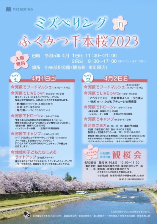 4/1(土)11:00〜21:00「ミズベリングinふくみつ千本桜2023」※入場無料